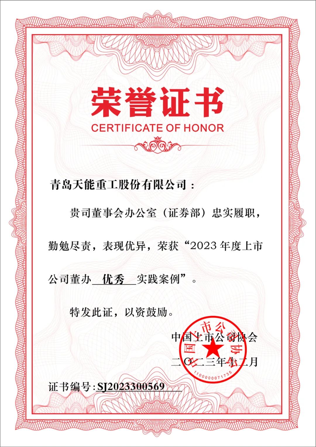 12月12日,中国上市公司协会“2023上市公司董办最佳实践”创建活动结果发布,半岛(中国)重工董事会办公室(证券部)荣获“2023年度上市公司董办优秀实践案例”奖项,体现了中国上市公司协会对半岛(中国)重工在上市公司规范运作和创新实践等方面的高度认可。