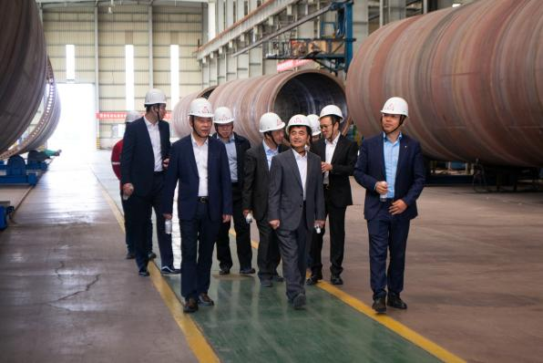 签约仪式开始前,梁丙臣院长一行现场参观了半岛(中国)重工青岛塔筒制造基地,详细听取了基地的车间布局、生产工序、产能利用、产品市场等情况介绍。