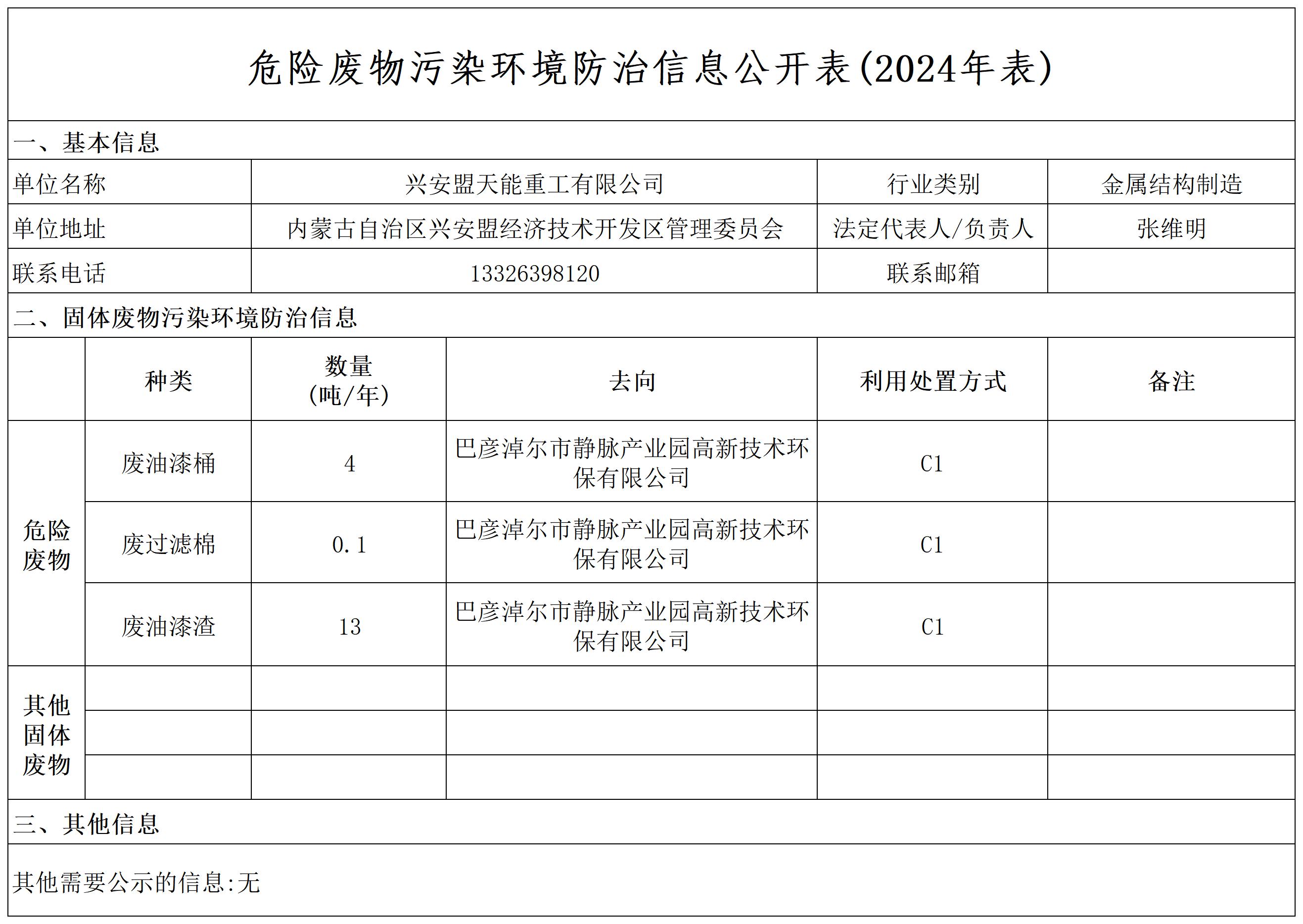 危险废物污染环境防治信息公开表(2024年表)