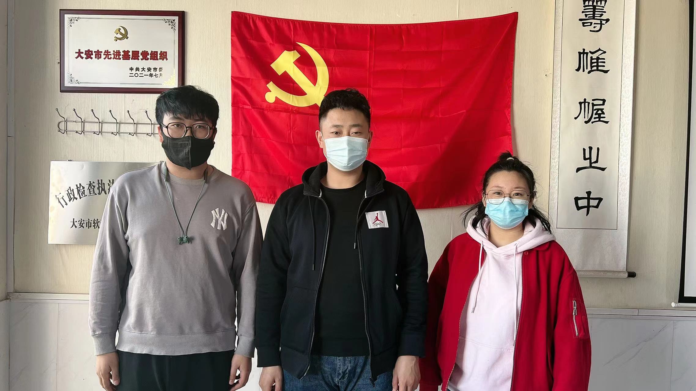 (获得竞赛一等奖的吉林公司代表队成员,自左至右:李帅,丁学庆,李婷玉)